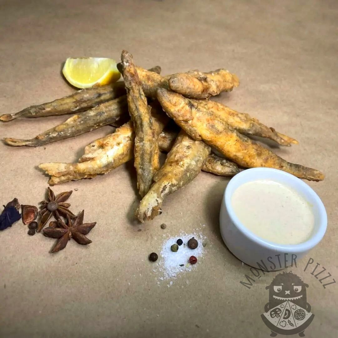 Наша жаренная новинки: Мойва фри — обжаренная свежая мойва для быстрого перекуска или как закуска к столу. Подаётся с долькой лимона и соусом Спайси